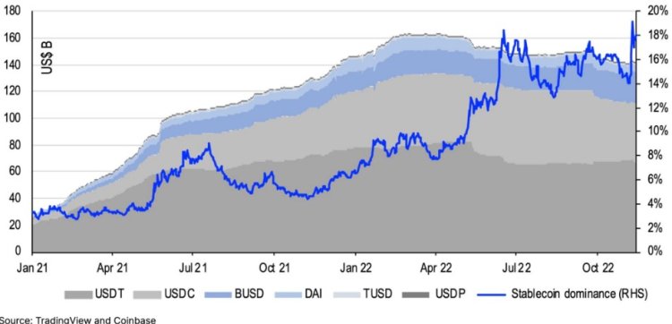 FTX’in iflas başvurusunda bulunmasının ardından, pek çok kurumsal yatırımcının varlığı FTX borsasında kaldı. FTX krizi, yatırımcıları ve büyük alıcıları kripto piyasasından uzaklaştırdı. Coinbase, stablecoin hakimiyetinin yeni bir zirveye çıktığını ve yüzde 18 arttığını kaydetti. Borsa, ayrıca bu verilerin likidite krizinin en azından yıl sonuna kadar uzayabileceğini gösterdiğini belirtti.