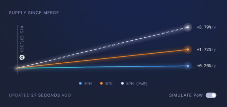 Söz konusu verilere göre eğer Ethereum PoS’e geçmemiş olsaydı bu süreç içerisinde arzı (yıllık enflasyonu) %3,79 artacaktı ve bu sayı yaklaşık olarak 102 bin Ethereum‘a tekabül edecekti. Fakat PoS sistemi sayesinde geçen süreçte arz sadece %0,20 artış sergiledi ve yaklaşık 5 bin Ethereum piyasaya sürülmüş oldu.
