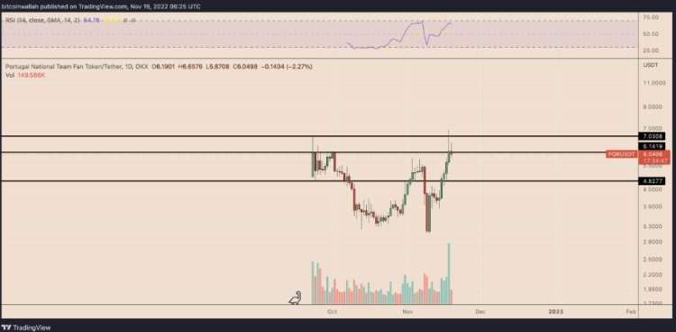 Portekiz Milli Takım Taraftar Tokeni (POR), en iyi performans göstren fna token’ları arasında üçüncü sırada yer alıyor. POR fiyatı 3,10 dolar seviyelerine kadar geri çekildikten sonra 19 Kasım tarihinde yüzde 100’lük bir değer artışı ile 6 dolar seviyesine yükselmeyi başardı.