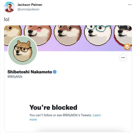 Jackson Palmer 21 Ağustos tarihinde Twitter üzerinden yayınladığı gönderide, Billy Marcus tarafından engellediğini gösteren bir fotoğraf paylaştı.