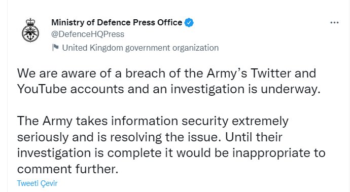 ngiliz Ordusu’nun sosyal medya hesapları saldırıya uğradı ve yaklaşık dört saat boyunca ihlal edildi. Saldırganlar, kripto para birimleri ve non-fungible tokenlar (NFT) ile ilgili paylaşımlarda bulundu.