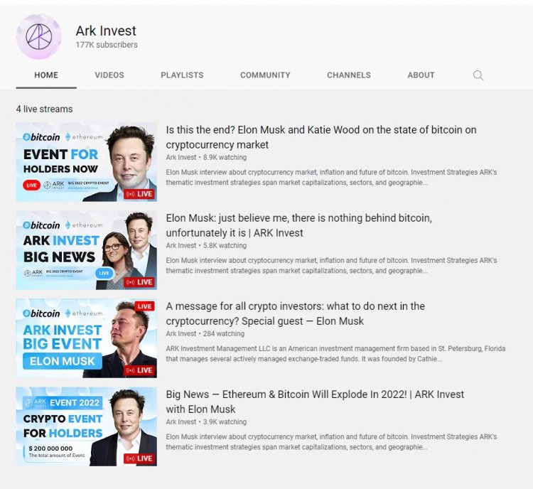 Twitter hesabından NFT paylaşımları retweet eden saldırganlar, Youtube kanalının ise ismini “Ark Invest” olarak değiştirdi ve Cattie Wood, Elon Musk ve Jack Dorsey’in yer aldığı videolar yayınladı. Yayınlanan videolarda hackerlar, izleyicilerden para talep ederek bu parayı iki katı olarak geri ödeyeceklerini söyledi.