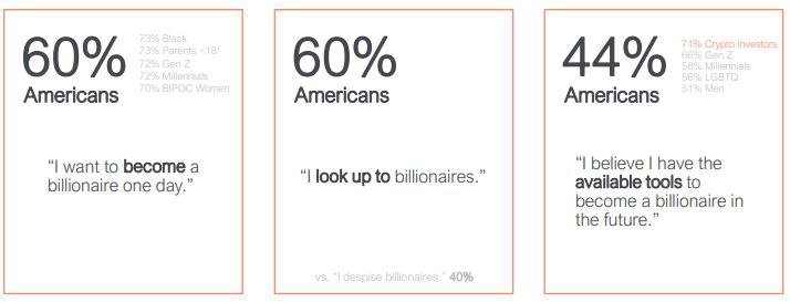 Anket, katılımcıların %60’ının bir gün milyarder olacağını düşündüğü ve %40’nın ise milyarderlerden nefret ettiği sonucuna ulaştı.