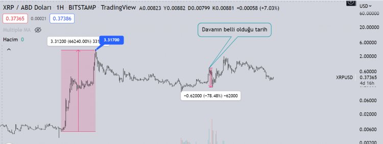 Ripple’a açılan davadan önce 2017-2018 yılları arasında yaşanan yükseliş döneminde Ripple, %66.000’den fazla yükseliş yaşayarak şimdiye kadarki en yüksek seviyesi olan 3,3 dolarlara kadar yükseliş göstermişti.